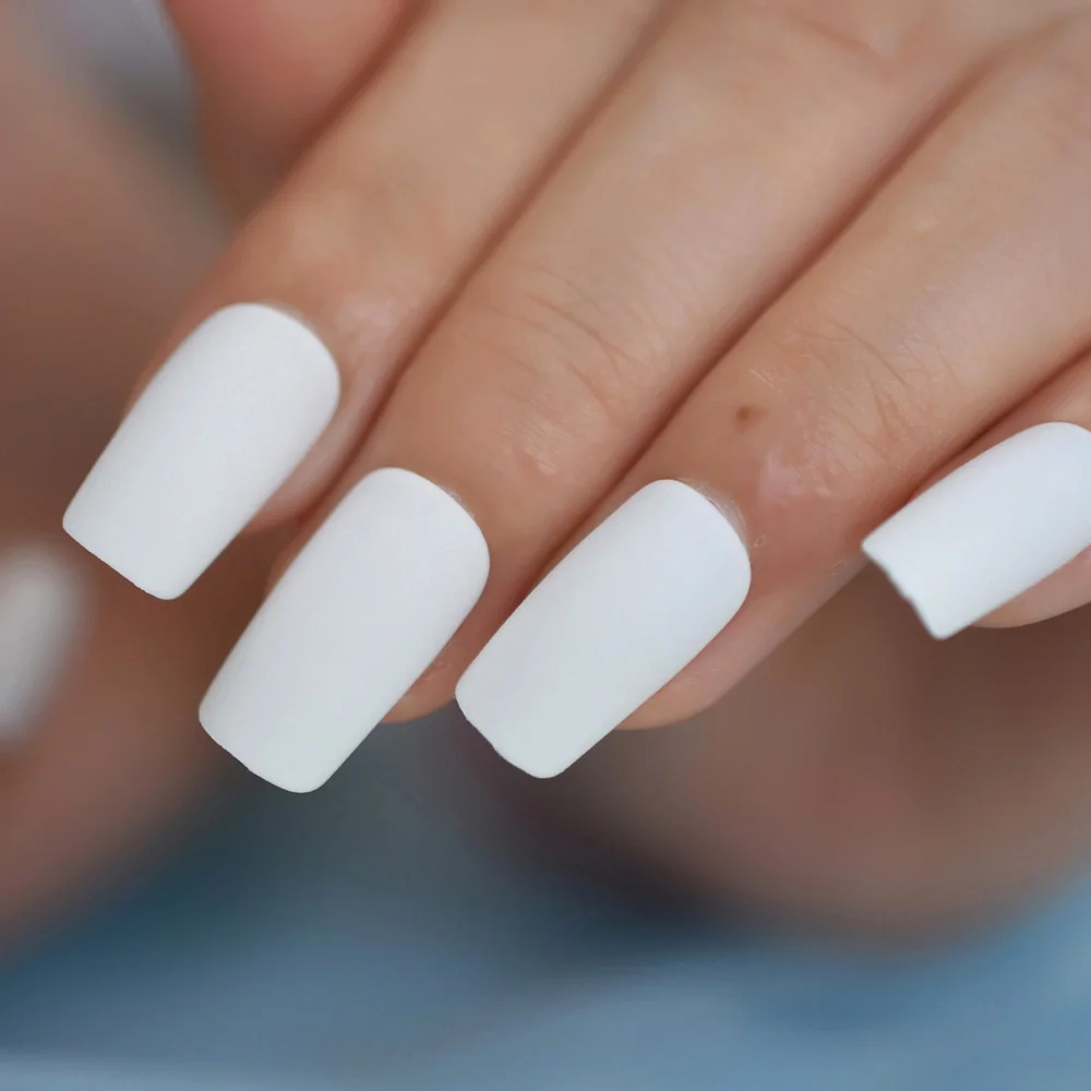 incredible Solid White Frosted Fake Nails 24Pcs Matte False Nail Full Cover faux ongle Free Glue Sticker for L