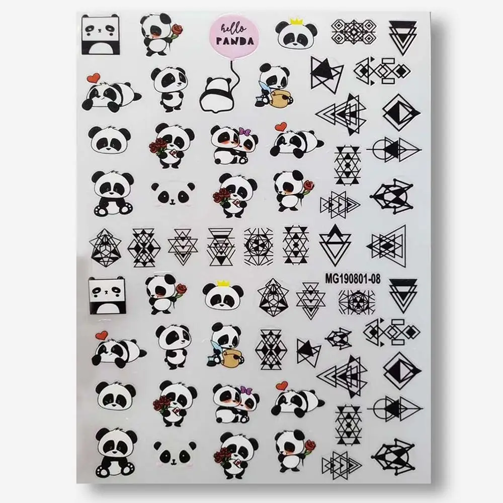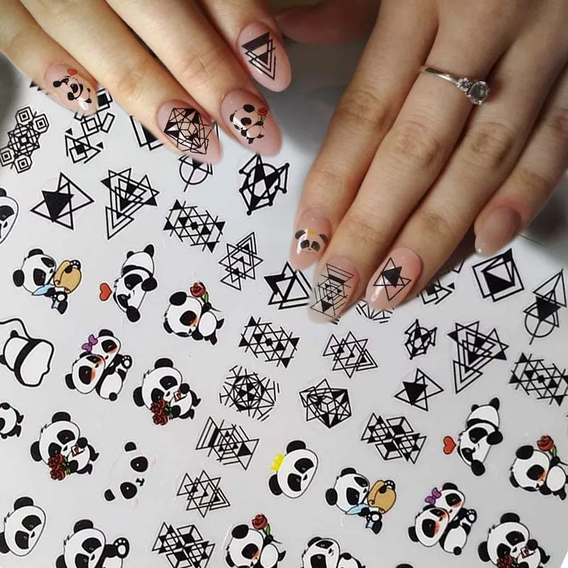 Best Water Nail Stickers Decal 3D Cute Panda Couple Geometric Patterns Design Transfer Nail Art Decorati