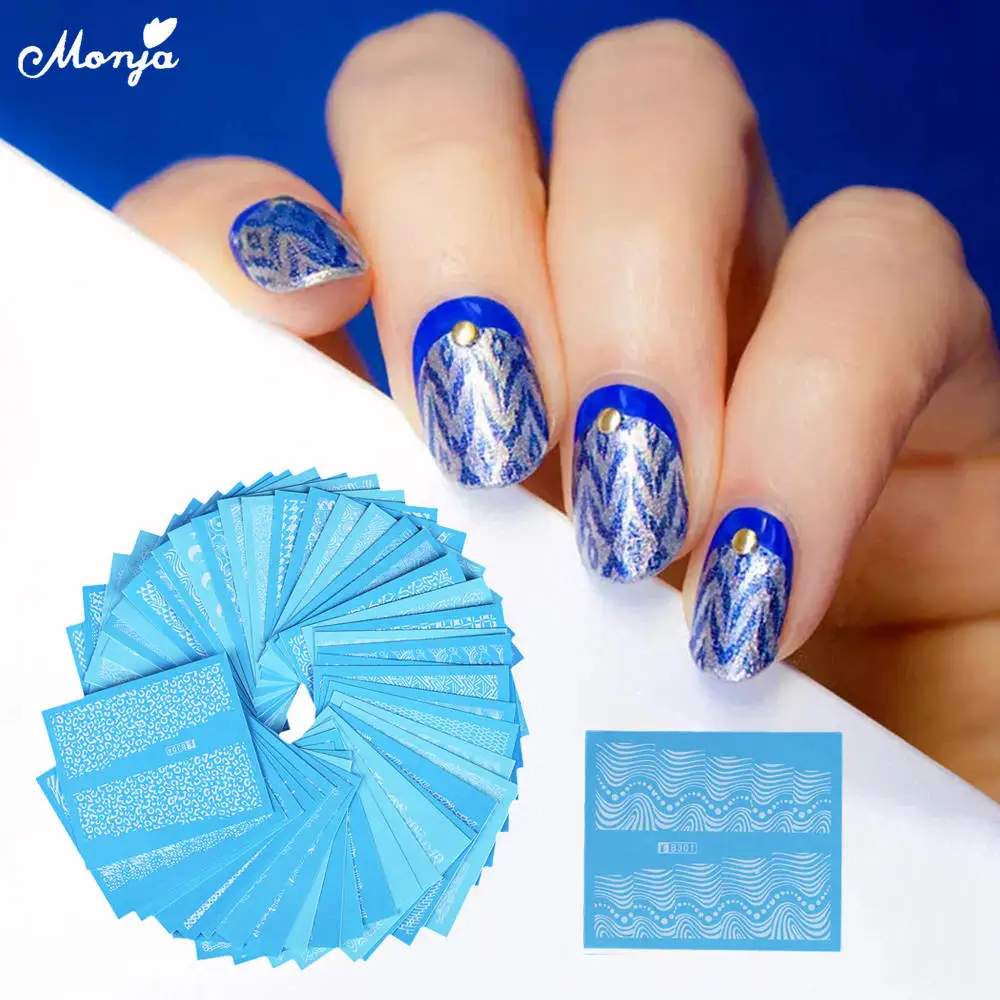 discount 48pcs / Lot Nail Stickers 3D White Lace Nail Decals Watermark Hollow DIY Nail Art Decoration Manicu