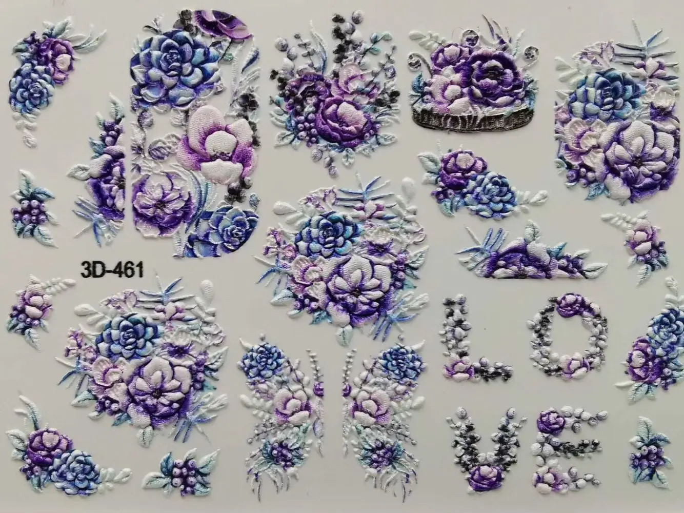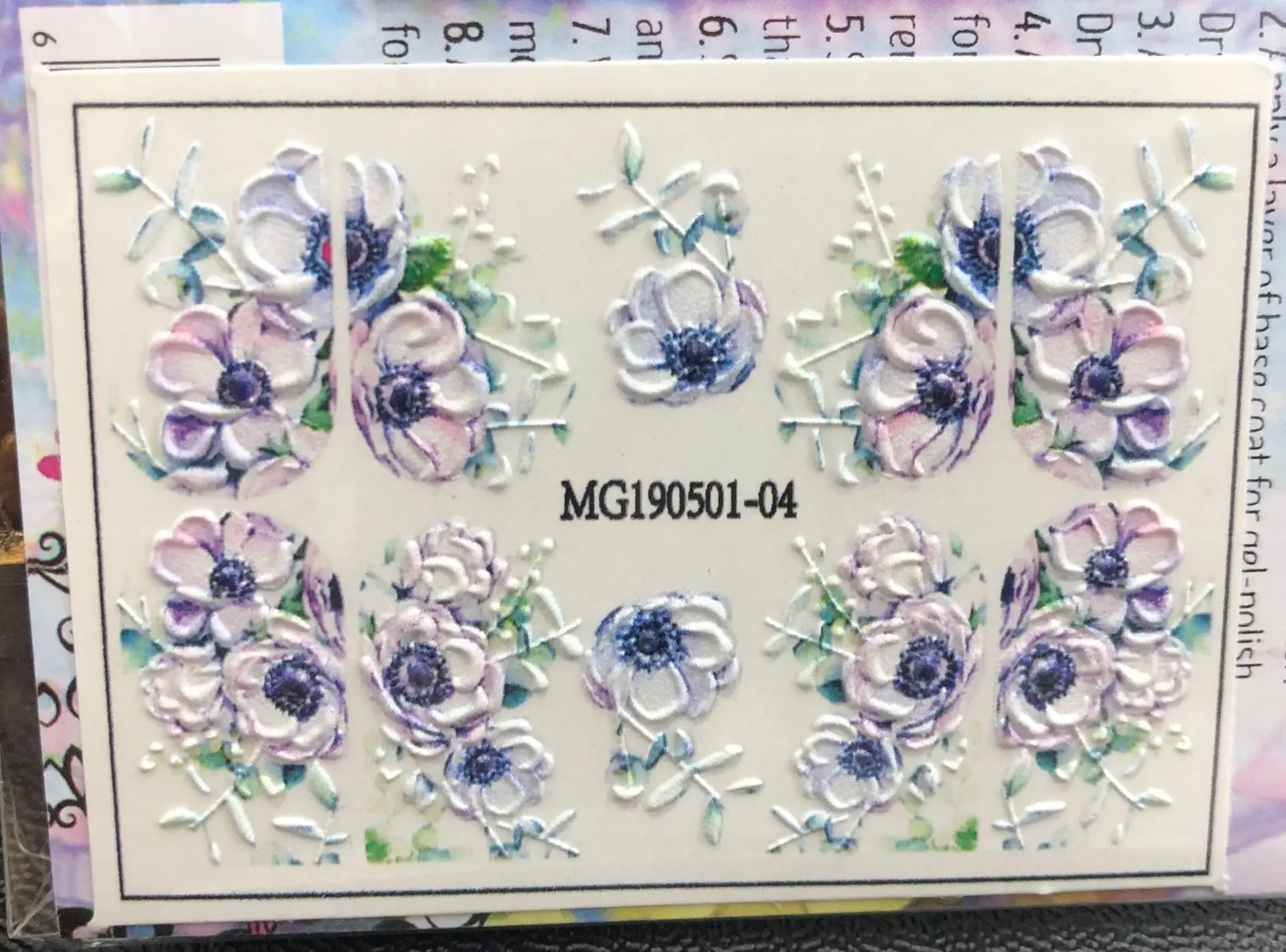 discounted 3D Acrylic Engraved blue Flower Nail Sticker Embossed Flower Nail Water Decals Fashion Empaistic Na