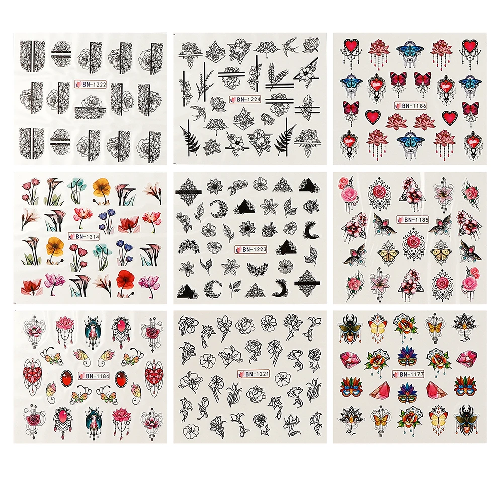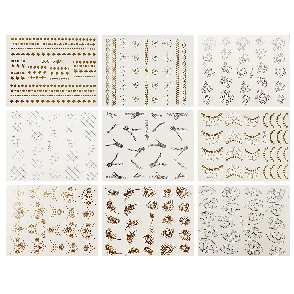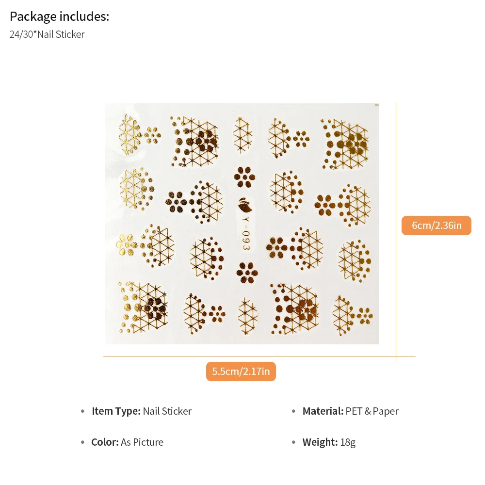 Ideal 24/30Pcs Gold Silver Nail Sticker Set Multicolour Triangle Decal Water Transfer Slider DIY Nail Art