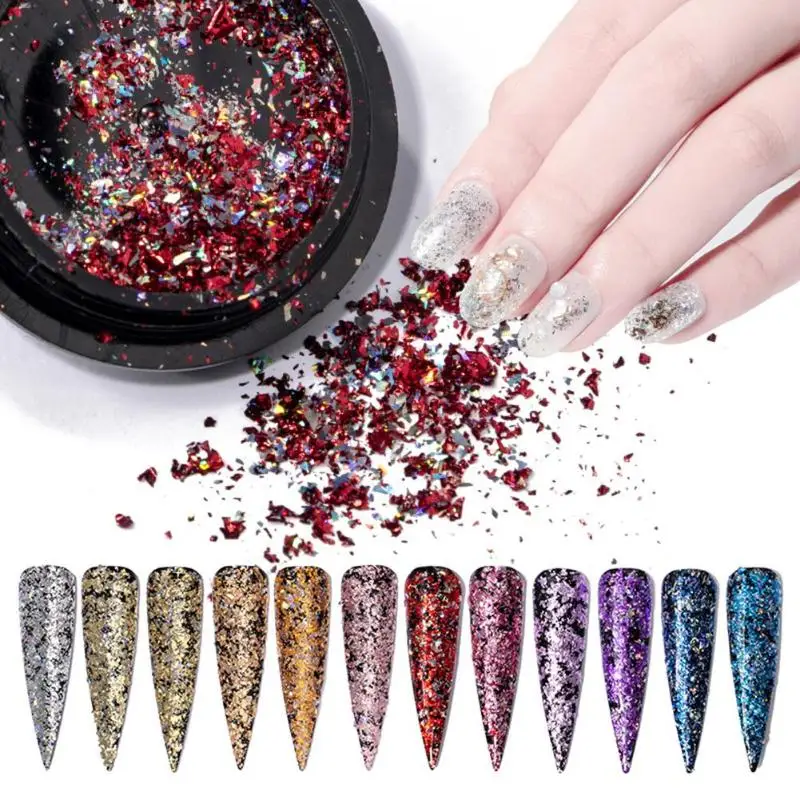 Ideal 1pc/6pcs Nail Sticker Foil Paper Nail Art Glitter Flakes Sequins DIY Nail Decoration Manicure Tools
