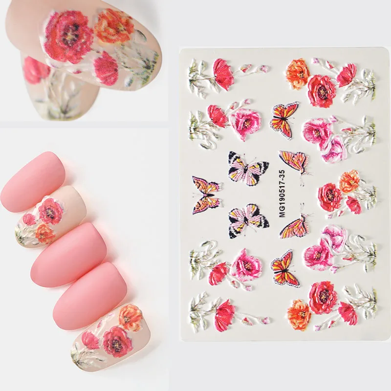 Best 3D Acrylic Engraved flower Nail Sticker flower butterfly Water Decals Empaistic Nail Water Slide De