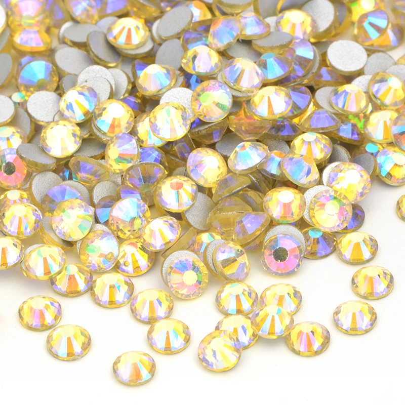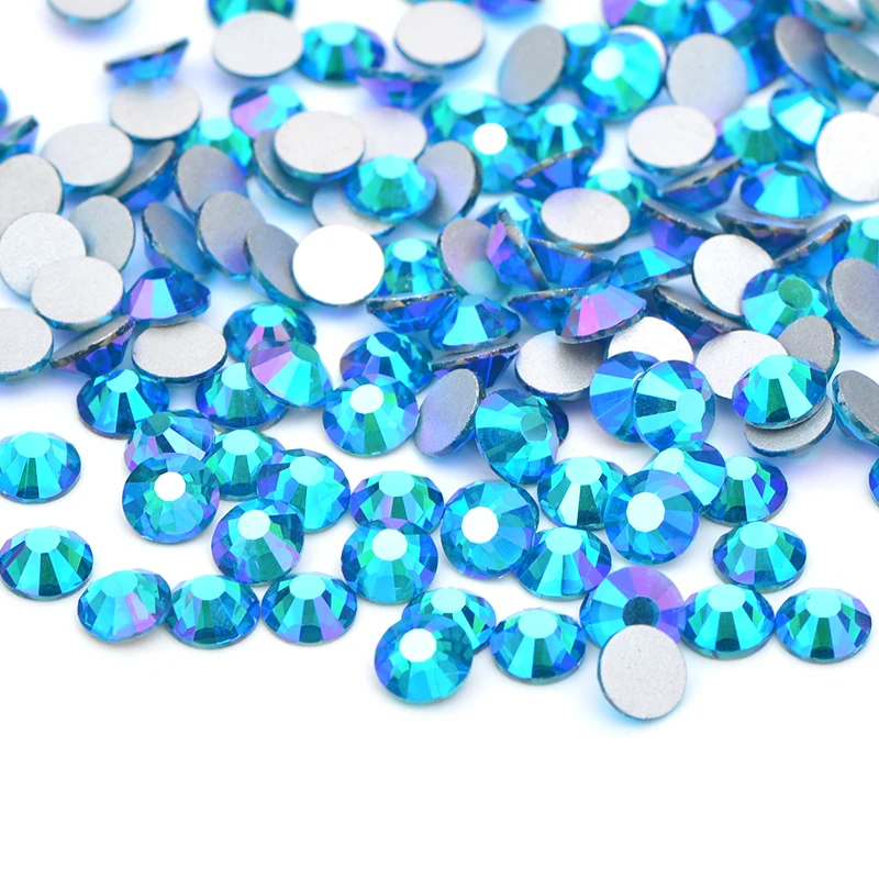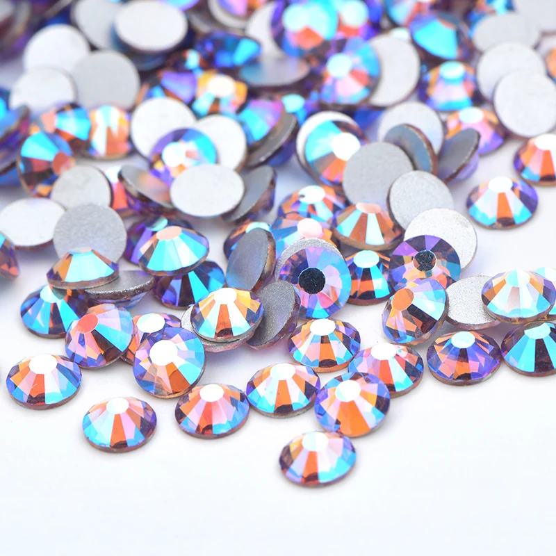 Most effective JUNAO SS16 SS20 Glitter Hyacinth AB Glass Flatback Rhinestone Applique Round Nail Crystal Stones St