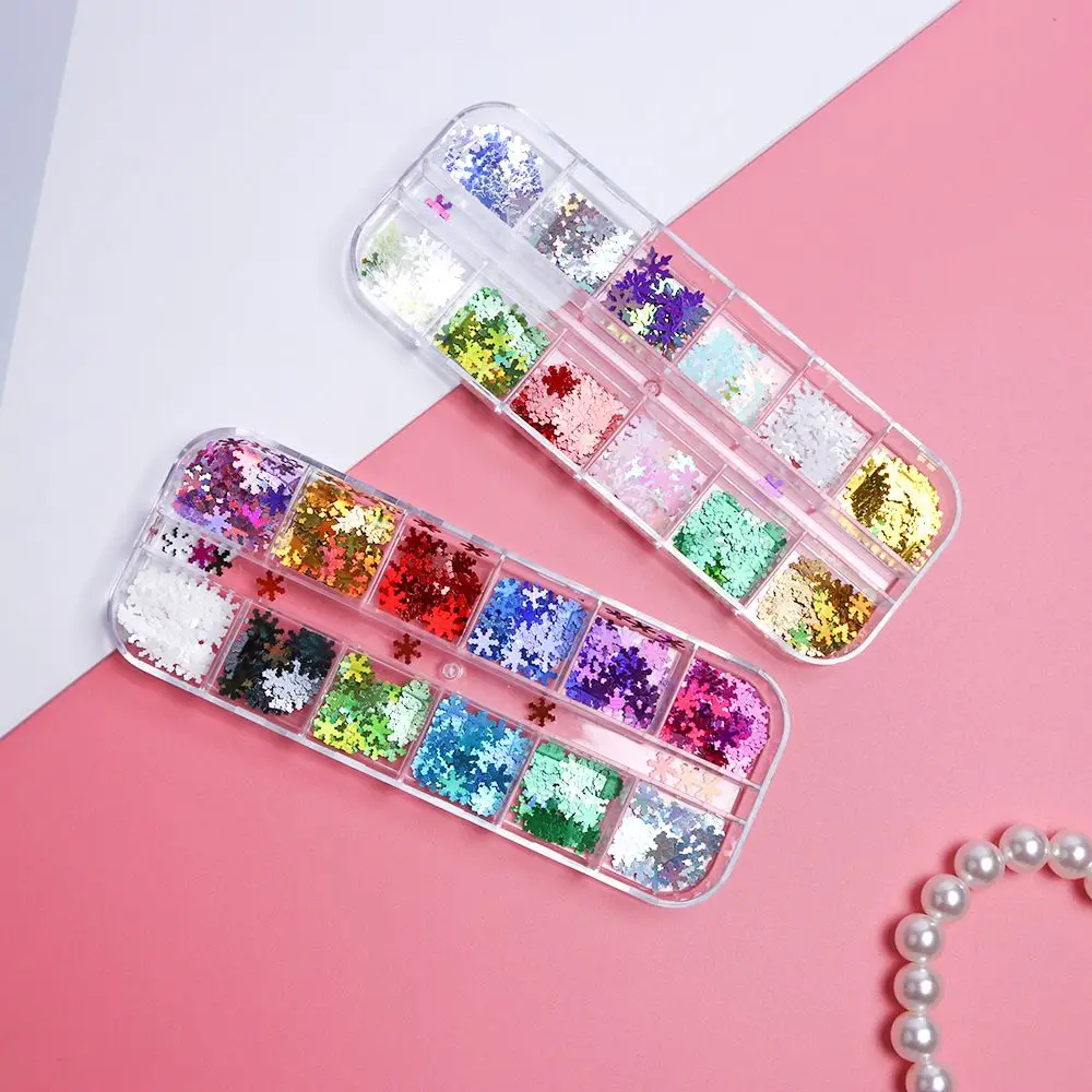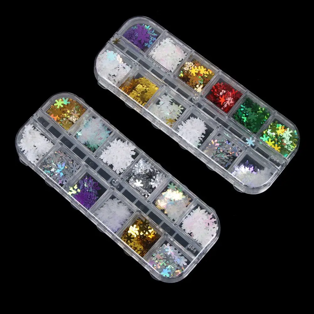 New 12 Grid Laser Christmas Snowflake Nail Art Stickers Decals DIY Sparkle Holographic Nail Decor Manic