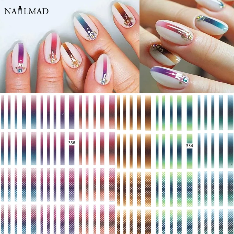 price cut 1pc Gradient Striped Lines 3D Nail Art Sticker Colorful Line Adhesive Decals Nail Accessories for N