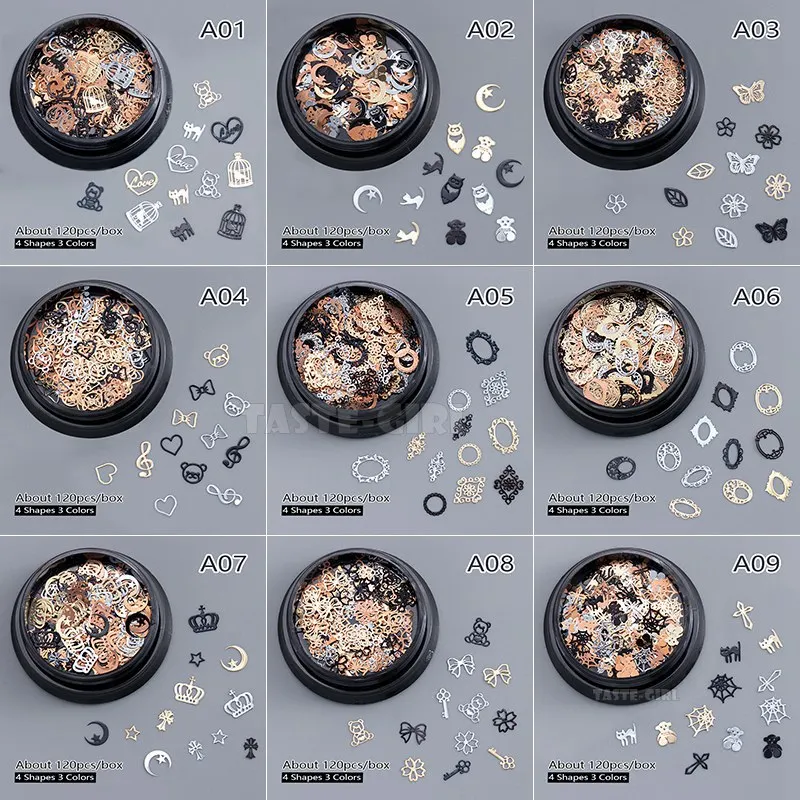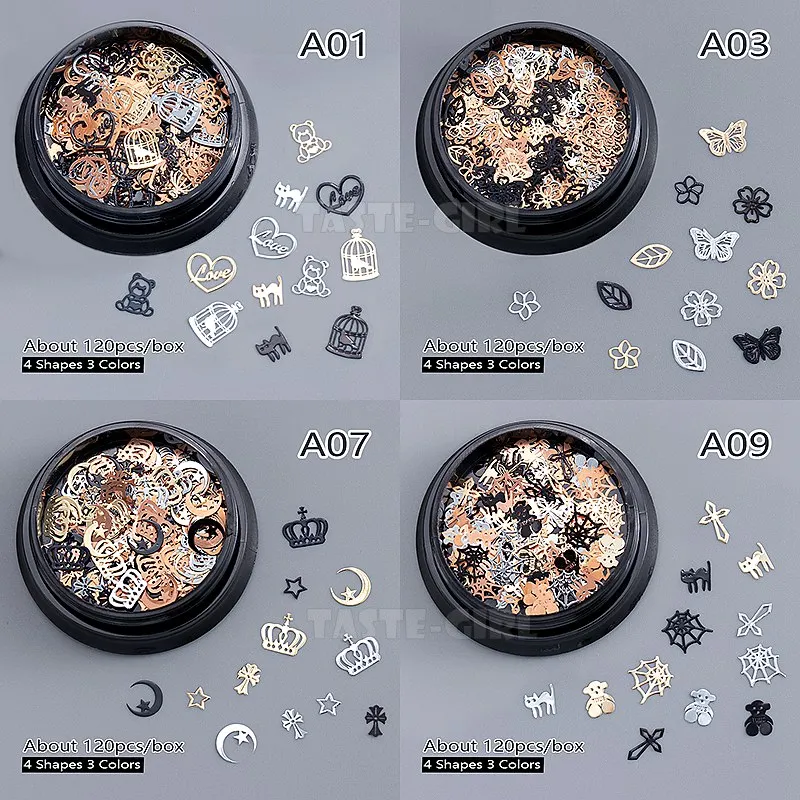 800pcs/pack Multi-Shapes Snowflake Crown Logo Design Black Brone Metallic Sequins Nail Art Sticker Cell Phone Decoration TG#,Mix 3 Colors 4 Shapes Bear Key Music Note Pattern Metal Sequin Nail Art Rhinestones Slice Decorations DIY Salon Tip3#, Mix 3 Colors 4 Shapes Bear Key Music Note Pattern Metal Sequin Nail Art Rhinestones Slice Decorations DIY Salon Tip3#