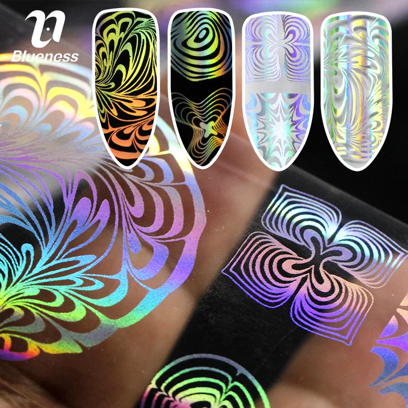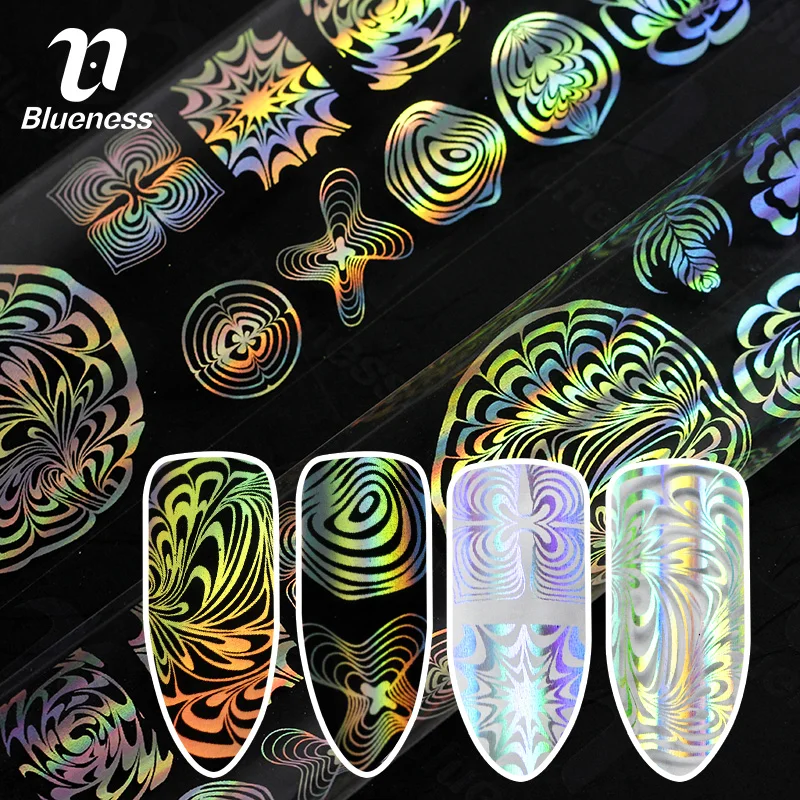 Promo Blueness 1Roll Retro Flowers Design Holographic Laser Nails Transfer Foil Stickers Manicure DIY Dec