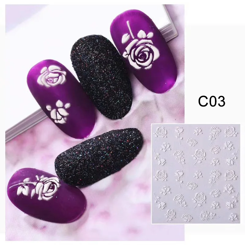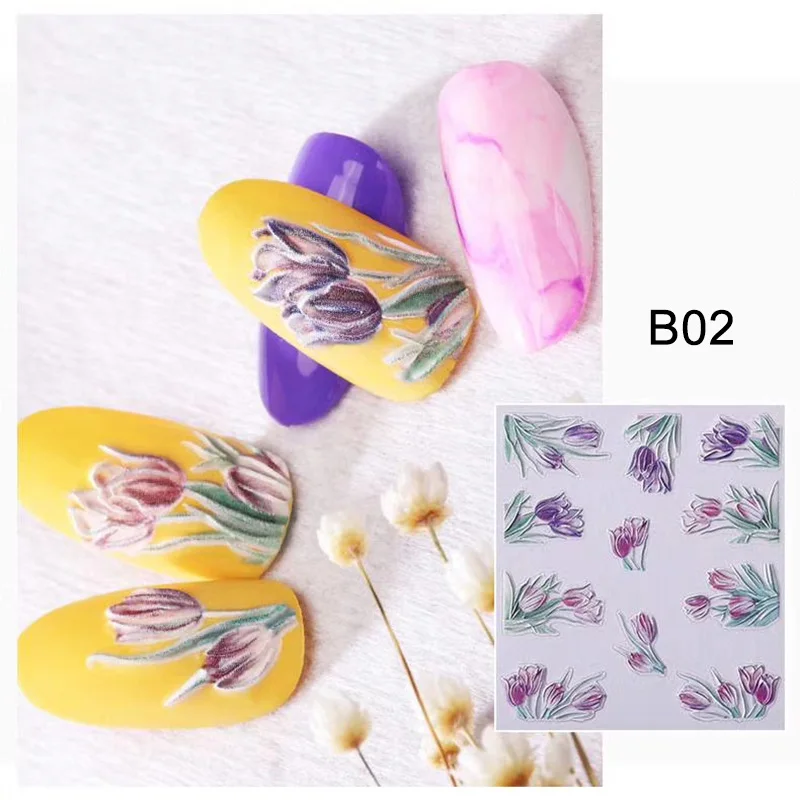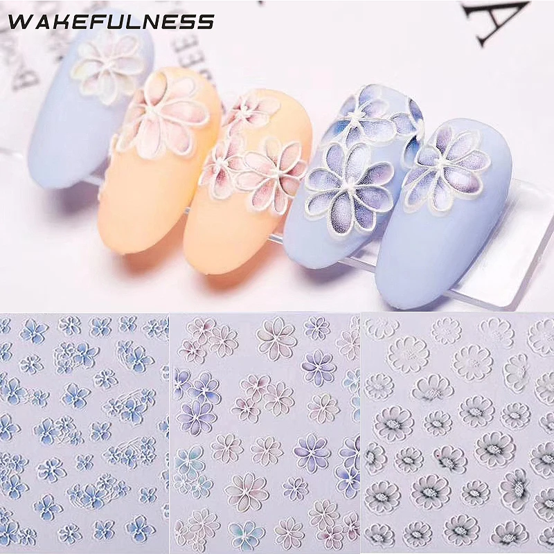 discount WAKEFULNESS 1Sheet Flowers Self-Adhesive 5D Nail Art Stickers Decals Acrylic Embossed 3D Nail Stick