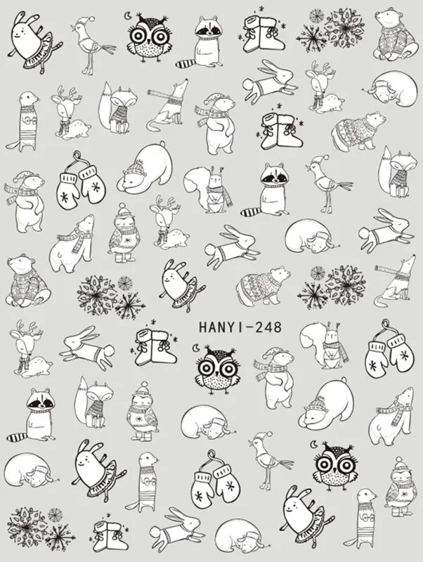 low cost Newest 3d nail art sticker hanyi-247-248 nail christmas Template Decals Tool DIY Nail Decoration To